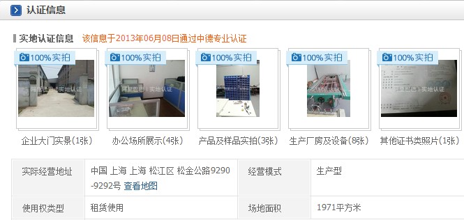 2013年6月8日,上海名高印刷设备有限公司通过阿里巴巴实地认证。